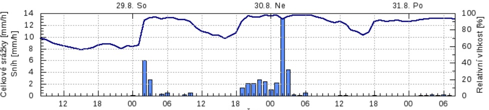 No a v 22:00 začalo pršet, ať už si Aladin píše co chce (viz níže), nějak se s předpověďmi dnes netrefil.