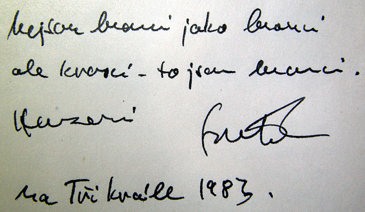 V SO jsem na burze koupil první vydání jedné starší knížky. A bylo v ní věnování. Myslíte, že je přímo od autora knihy? Rozluštíte někdo ten podpis? Mě to přijde jako "Svatopluk", ale kdo ví...
