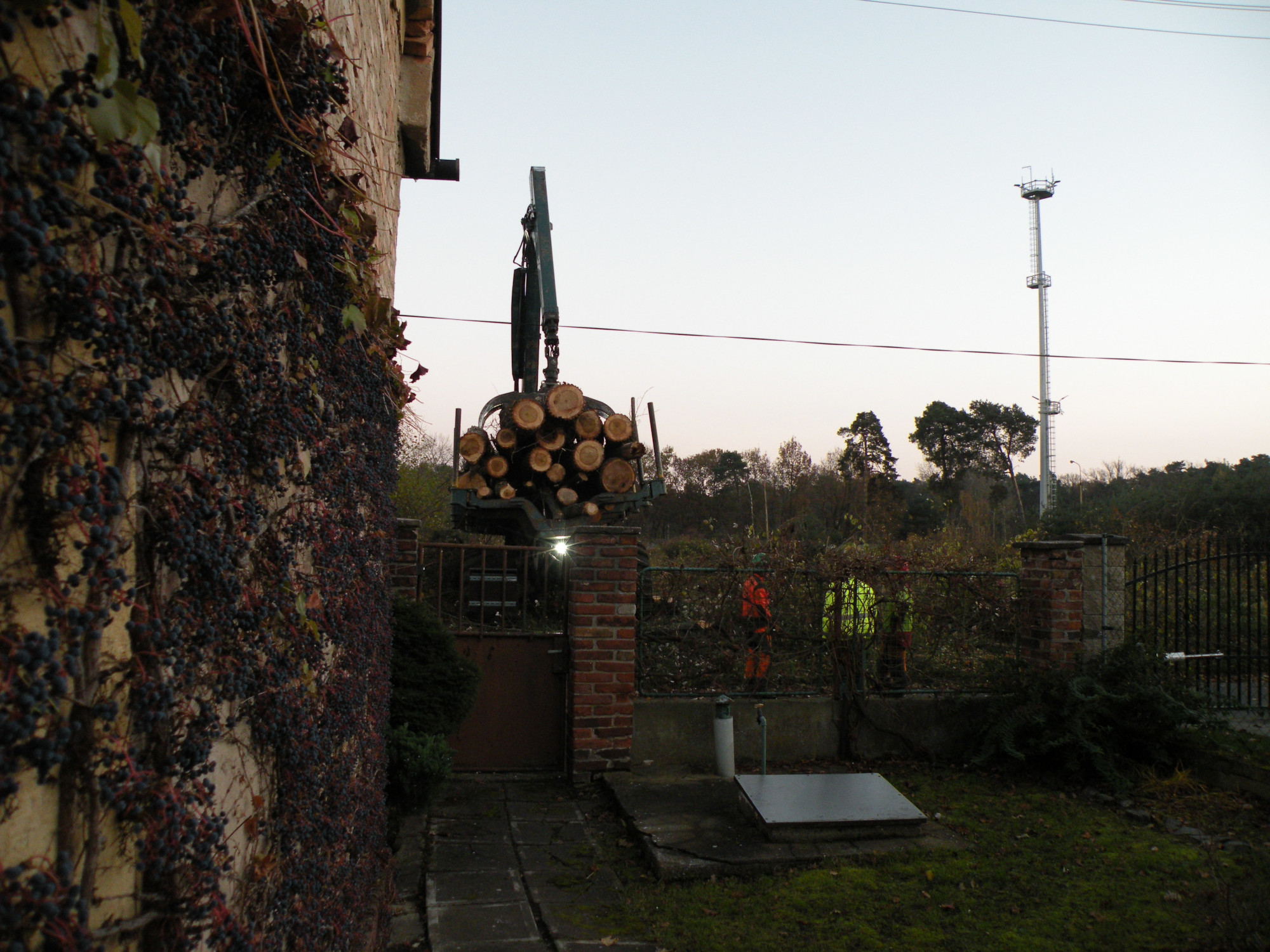 Tak to netuším. Řežou až do tmy a dřevo hned nakládají a odvážejí. Jediné, co vidím, že tu ještě leží, je ta veliká borovice, kterou jsem měl přímo před okny. Tu uřízli včera již skoro za tmy a borové dřevo je asi až tolik nezajímá. Duby a pod. nakládají okamžitě po pádu na zem a rozřezání.
