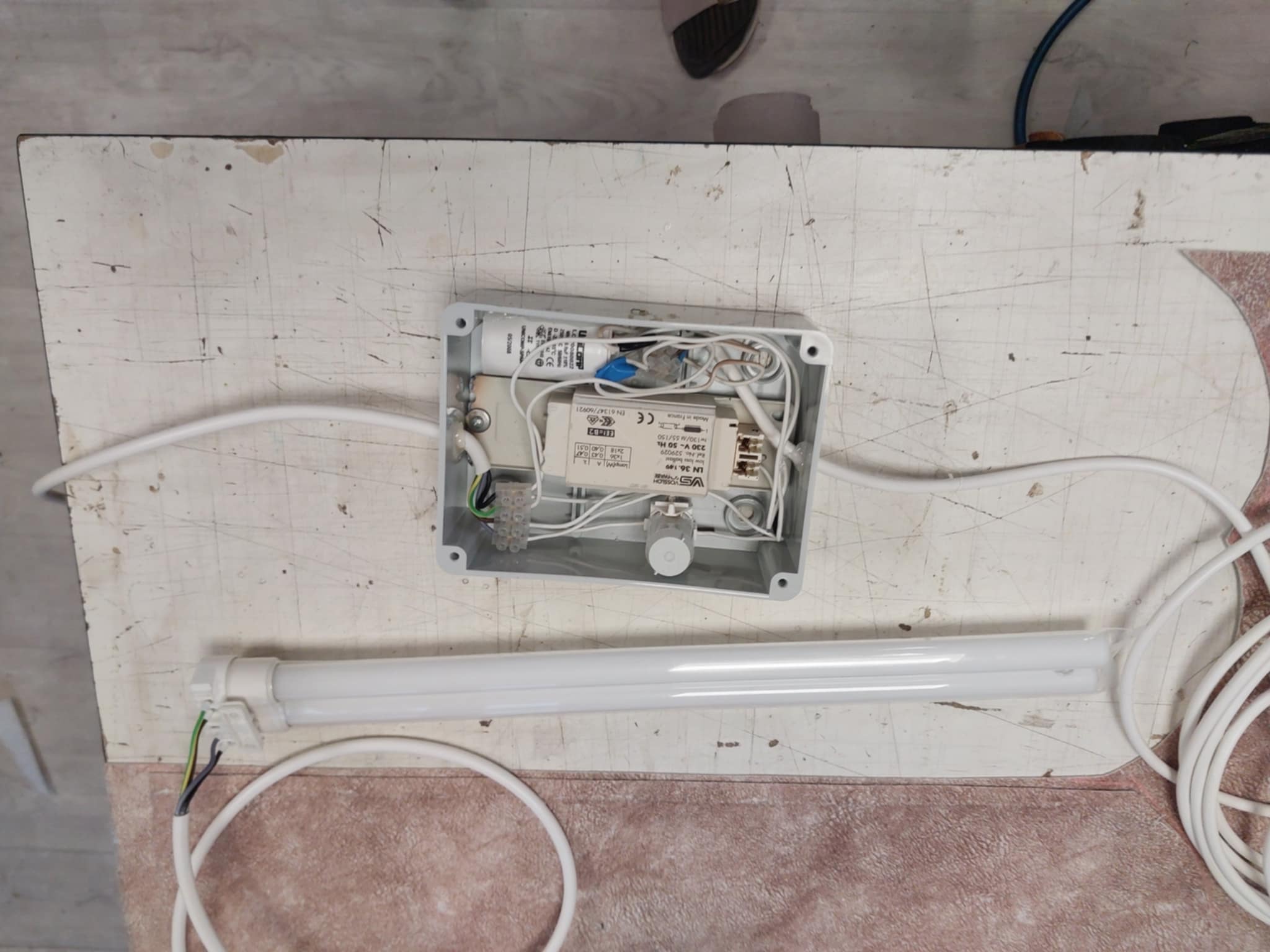 Já zatím ještě nezasvítil, zatím u nás byly jen dva vhodnější večery a to jsem byl pryč. A to jsem si udělal další sestavu na svícení. Je to teda síla 36 W UVA zářivky.
