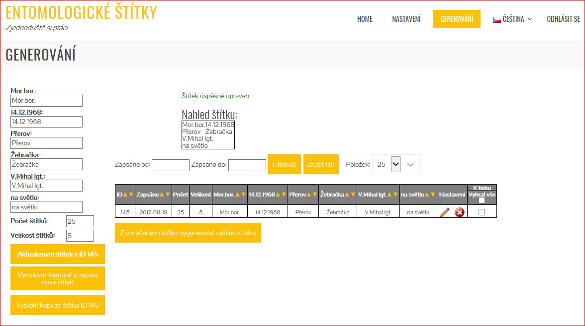 Měl jsem možnost zkoušet různá udělátka a nikdy to nebylo přesně to co si představuju. Nevidím zásadní rozdíl v napsání štítku ve Wordu do formátu, který požívám nebov jeho vytvoření v uvedeném udělátku. Pak to kopírovat ve wordu je taky brnkačka a to píšu ročně mnoho tisíc štítků. pokud se jedná o lokality, které navštěvuju opakovaně, tak současné programy v počítači bez problémů najdou předchozí dokumenty, já si totiž za každý rok ty lokality uložím zvlášť a v dalším roce je zkopíruju a přidávám další. To zajímavější je to z determinákama, kde je fajn používat zavedenou databazi, zvláště, když dělám všechny brouky a je to několik tisíc položek, nějaké udělátko mám od kolegy, ale stejně o nakonec píšu taky ve wordu, to je sice zdržovačka, ale zase ne tak dramatická.