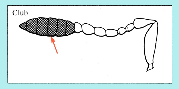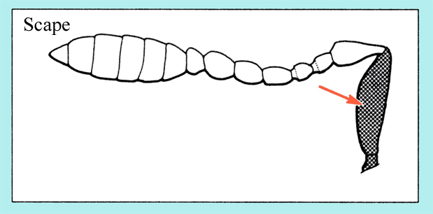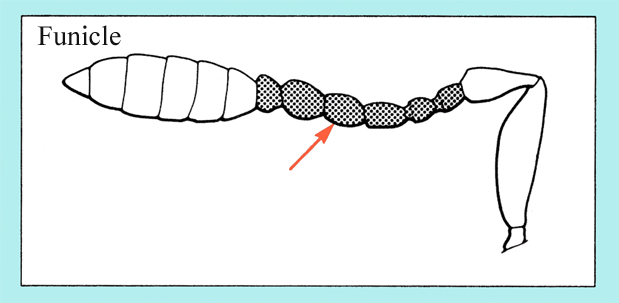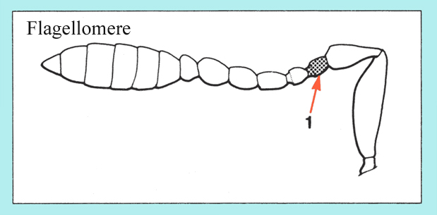 Funicle with joint 1 much shorter than 2,femora only slightly elevate