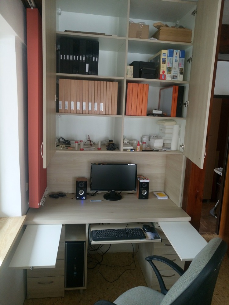 konečně jsem si vyčlenit čas a v práci si chci vyrobit preparační koutek. Představa je stůl - na jedné straně šuplíky, na druhé pc. Nad stolem až ke stropu skříň na krabice.