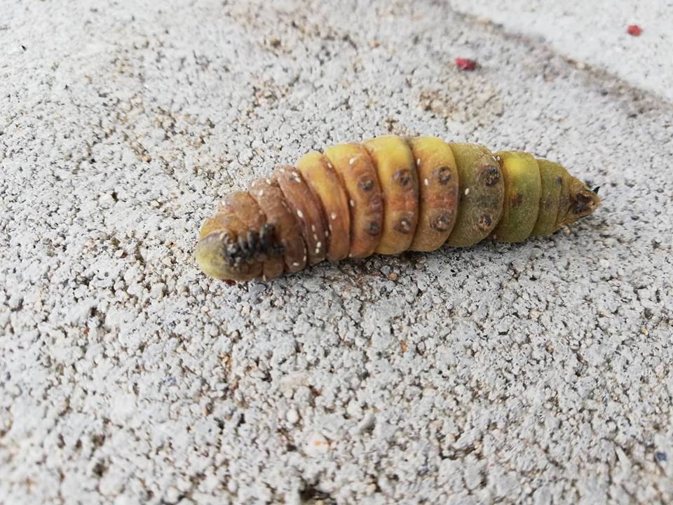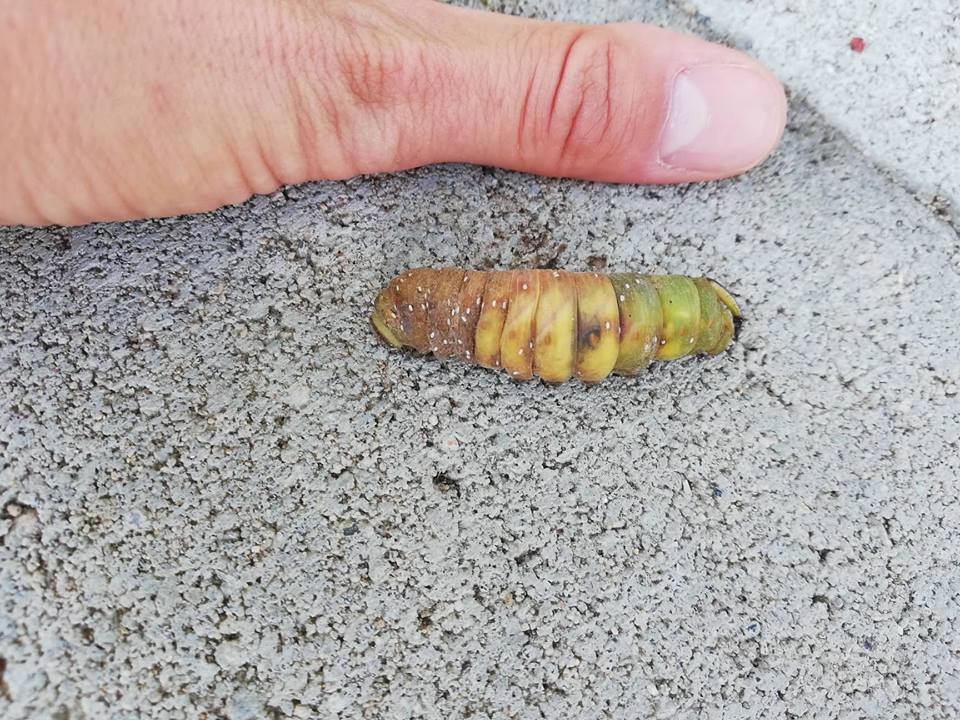 muj syn na zahrade vyhrabal v hline tuto housenku. Zkousela jsem googlit, ale nic podobného jsem nikde nenasla. Ma jakoby ocasek vzadu.