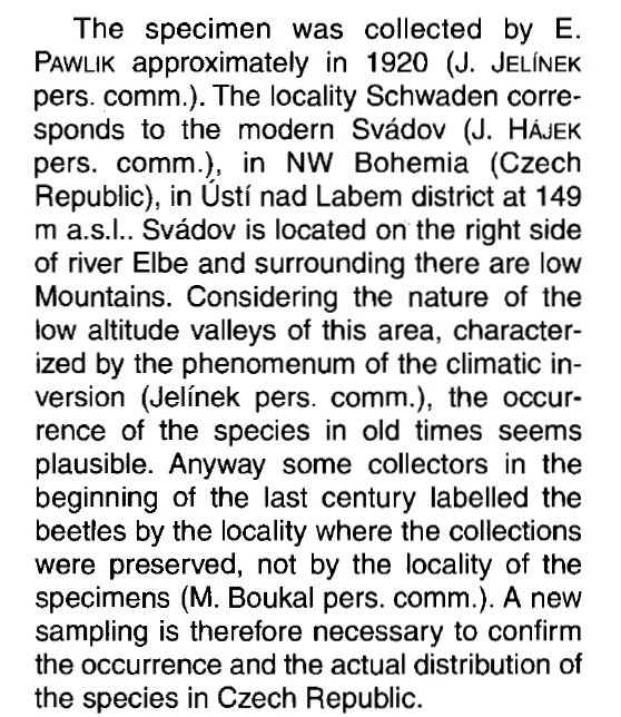 Mám ještě jeden nápad, nežil Pawlik v obci Schwaden? když jsem zadal do Googlu, vypadl tento odkaz-níže, ovšem, je to práce na kterou jsem se nedostal, a nejsem si jist, že obě věty (anglicky a německy) se vztahují k témuž. Zkus kouknout do Kolešky. Možná to není lokalita sběru, ale místo uložení, jako bych já napsal Bobrovníky-Mantič. Jinak jsem na Schwaden-Pawlik narazil u nějakých kovaříků a dlouhososek, vždy bez data. (http://theses.cz/id/sqdf6u/Veronika_Mot ... ososky.pdf)