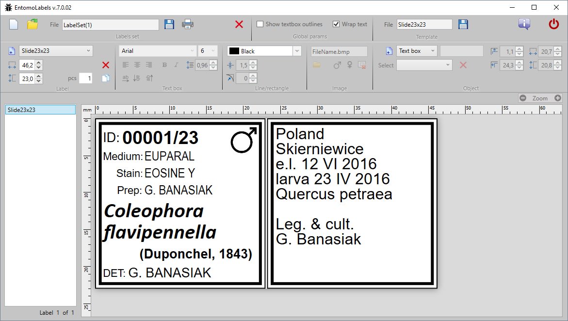 EntomoLabels is free software for creating the necessary entomological labels. The downloadable version will be made available during the week.