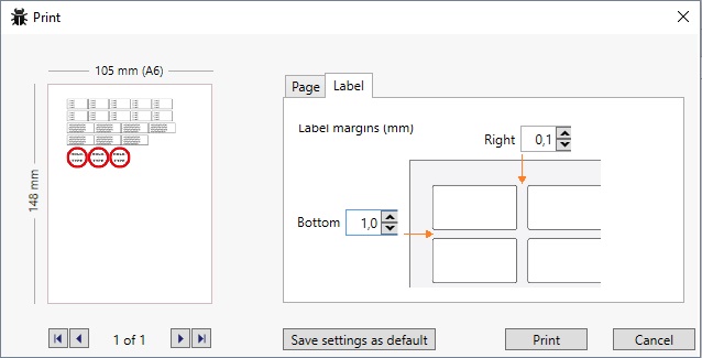 In addition, you can set the distance between labels to cut them with scissors or a knife - one cut (this is set in the Labels tab in the print window).