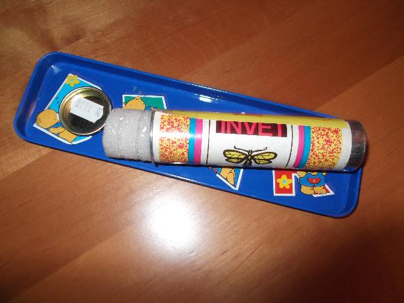Na plastové krabičce s datem výroby 02. 2006 (stejná firma = Avion Židlochovice): paradichlorbenzen, aromatická látka. Staré invety byly prostě paradichlorbenzen (s nějakým "vonítkem").