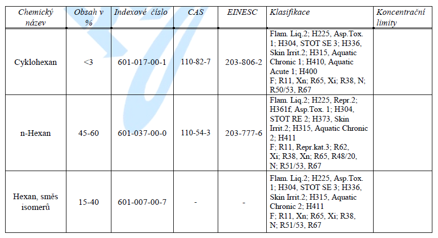 Složení lékařského benzínu přikládám: