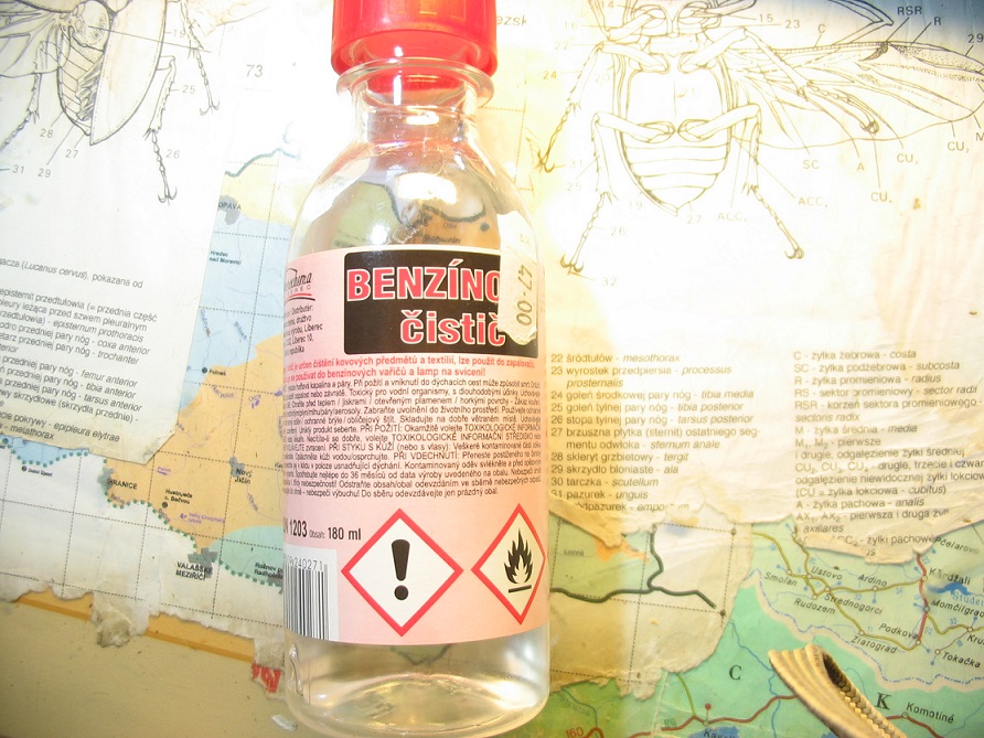 Tady máš ještě ukázku, jak luhuju zcela vyschlé brouky v benzínu já:recesívny homozygot píše:Takže tam bol problém! Jasné! Super! Vďaka za vyjasnenie! Najprv mechanické nečistoty, upraviť podopretím špendlíkmi, nechať vyschnúť, a používať výhradne lek. benzín...