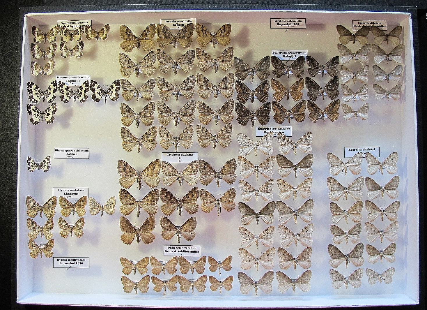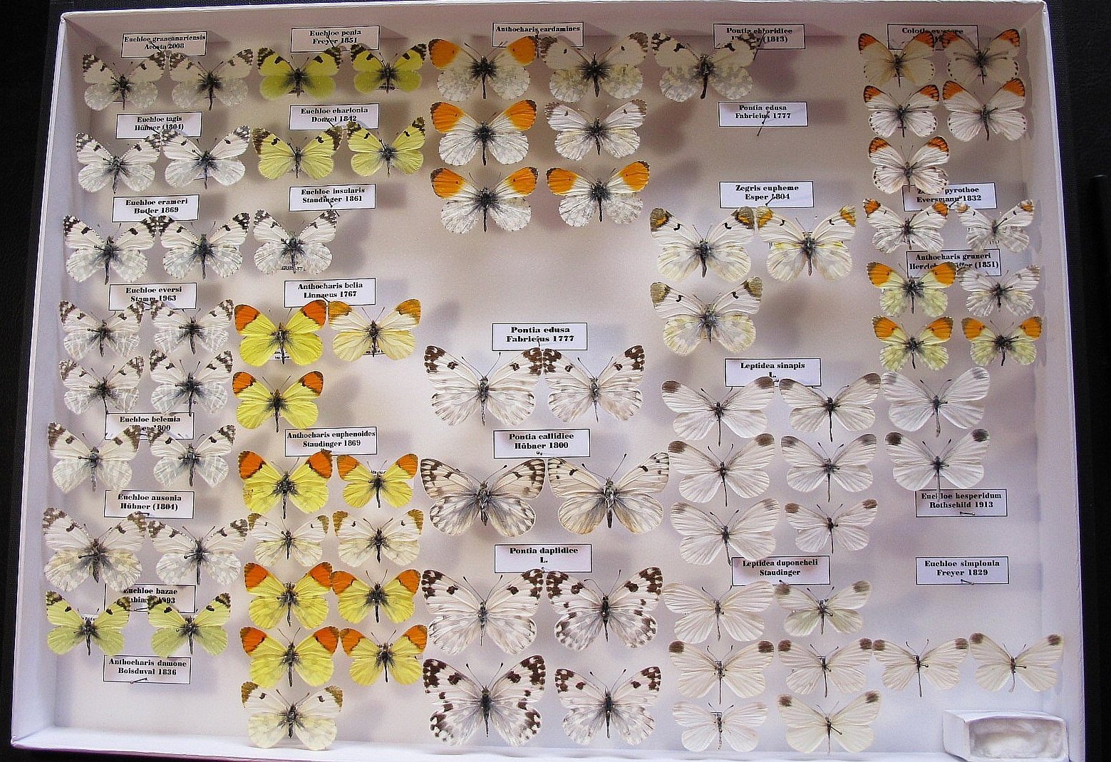 A pokud se týče rovnání v krabicích, nakonec se mi u motýlů ostálilo, že nově přiřazené druhy nejprv dávám do zásobní a pak přijde čas, že vezmu nějakou skupinu, vezmu prázdné krabice, začtu se do nových zpráv, pdf, osvěžím si to a pak tu skupinu přepíchám, zkontroluji, snažím se nějak evidovat ale to mě snad vubec nejde. U motýlů řadím podle velikosti jak to jde do sloupců a vesměs mám krabice s 4 sloupci. Řadu věcí pak mám až snad neesteticky usporně na šikmo, ale vždycky si říkám, že příště to už udělám aby měl motýl prostor.