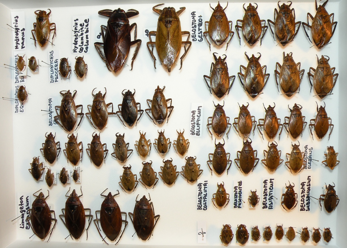 Jinak jsou to kusy: první 2 za štítkem "Belostoma sp" (první krabice) a první kus za štítkem "?" (třetí krabice)