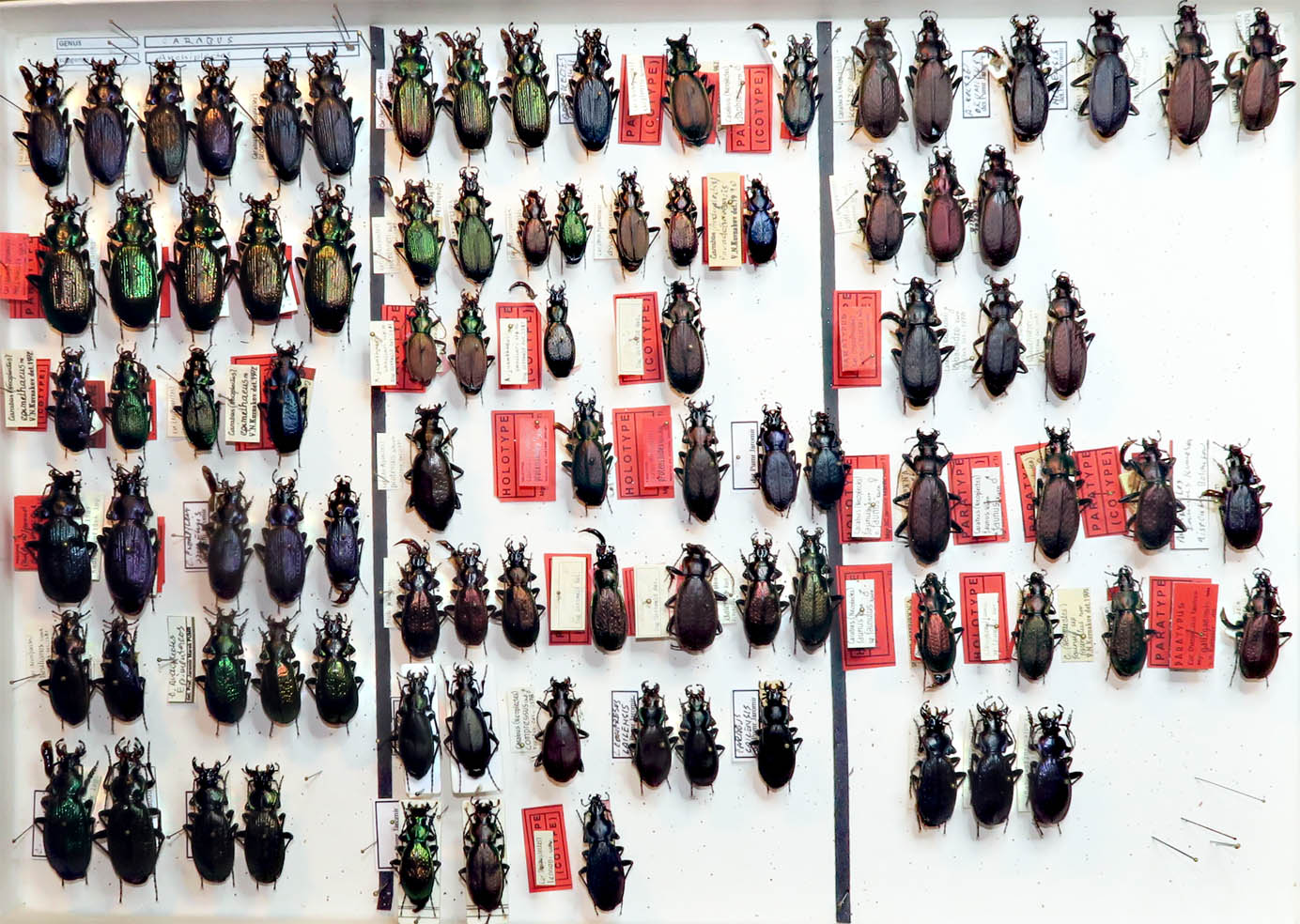 Dnes již se zajímám převážně jedinou čeledí, tesaříky světa, ale jen těžko se člověk loučí s tím, co celý život tvořil, s jinými čeleděmi. Letos jsem se rozloučil s většinou dubletů rodu Carabus, který jsem recipročně přenechal jednomu muzeu. A tak se má sbírka tohoto rodu smrskla do pár krabic, již bez bohatých serií. Ani už to není tak libě upraveno, jak dříve.