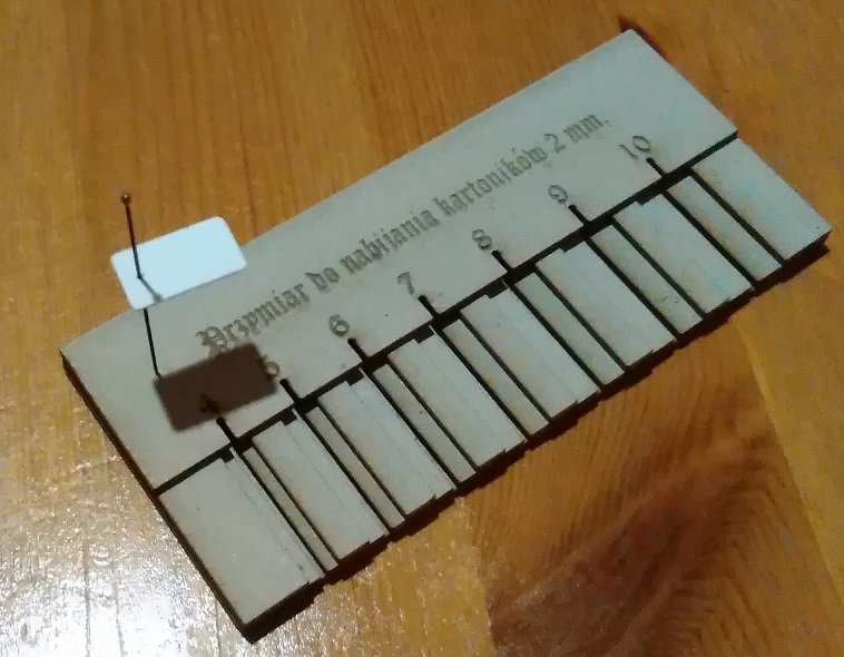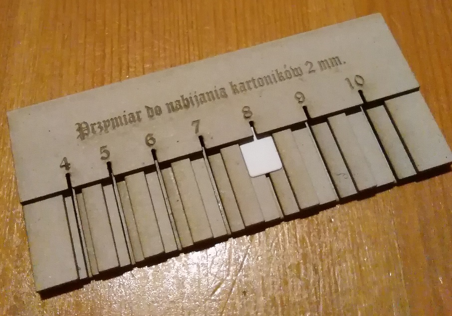 Zrobiłem z tektury taki prototyp przyrządu do nabijania kartoników na szpilki. Sprawdza się bardzo dobrze.
